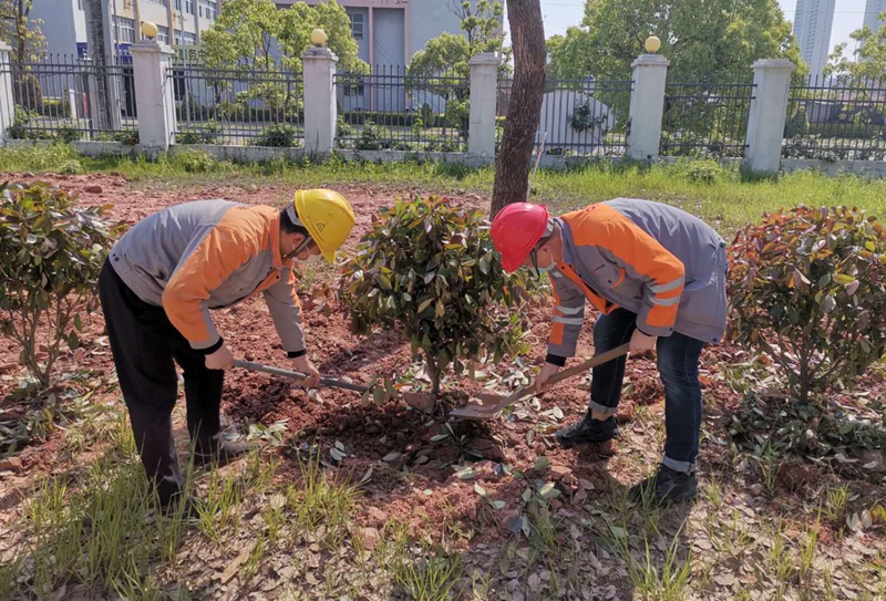 栽(zai)下棵棵樹苗,留下(xià)一片新綠,活動現(xian)場一片繁忙。團員(yuán)🙇♀️青🤟年♻️在植樹工人(rén)的技術指導下,分(fen)工協作,揮鍬鏟土(tu)、填入樹苗、扶直樹(shù)苗、培實新土、提水(shui)澆灌,大家配合㊙️默(mò)契,繁忙有序。一株(zhū)株樹苗穩‼️穩地紮(zha)根在土壤中,爲廠(chang)區增添了一片春(chūn)天的綠意。